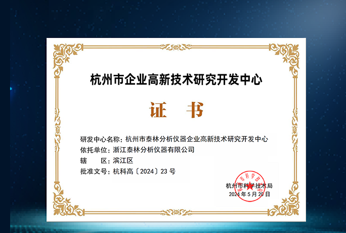 創(chuàng)新實力再獲肯定!泰林分析榮獲杭州市企業(yè)高新技術研究開發(fā)中心認證