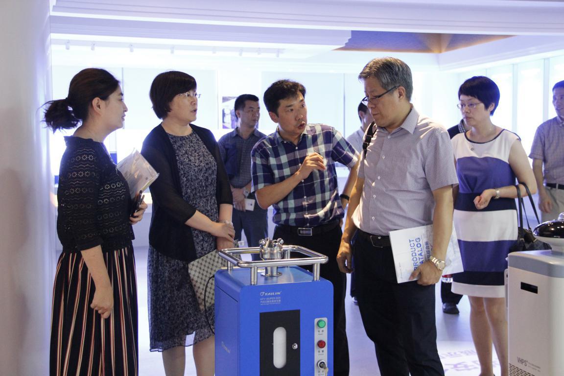 調(diào)研組領(lǐng)導和專家們查看了泰林自主研發(fā)的系列消毒產(chǎn)品,來到了行走的滅菌機器人面前,對公司的產(chǎn)品在院感、疾控領(lǐng)域所發(fā)揮的作用給予充分肯定,希望泰林繼續(xù)重視在消毒產(chǎn)品方面的投入和推廣應用。當了解到泰林在國家標準與行業(yè)標準制訂方面所做的努力和取得的成果時,稱贊這項工作十分有意義,鼓勵公司在專業(yè)領(lǐng)域持續(xù)深耕,積極參與消毒滅菌相關(guān)標準的制訂。