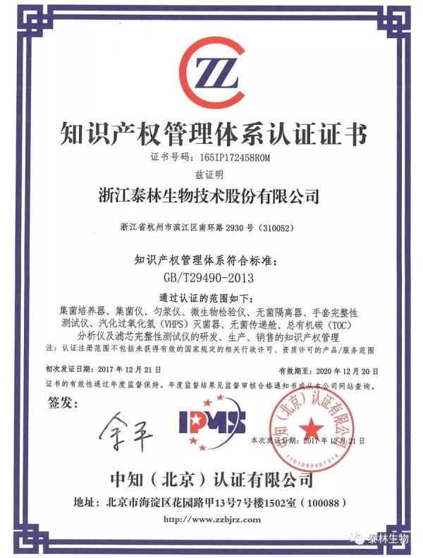 去年6月,泰林生物召開知識產(chǎn)權(quán)貫標啟動大會,經(jīng)過近半年的知識產(chǎn)權(quán)管理體系建設(shè)運行,2017年12月21日,泰林生物通過知識產(chǎn)權(quán)管理體系評審,正式獲得知識產(chǎn)權(quán)管理體系認證證書。