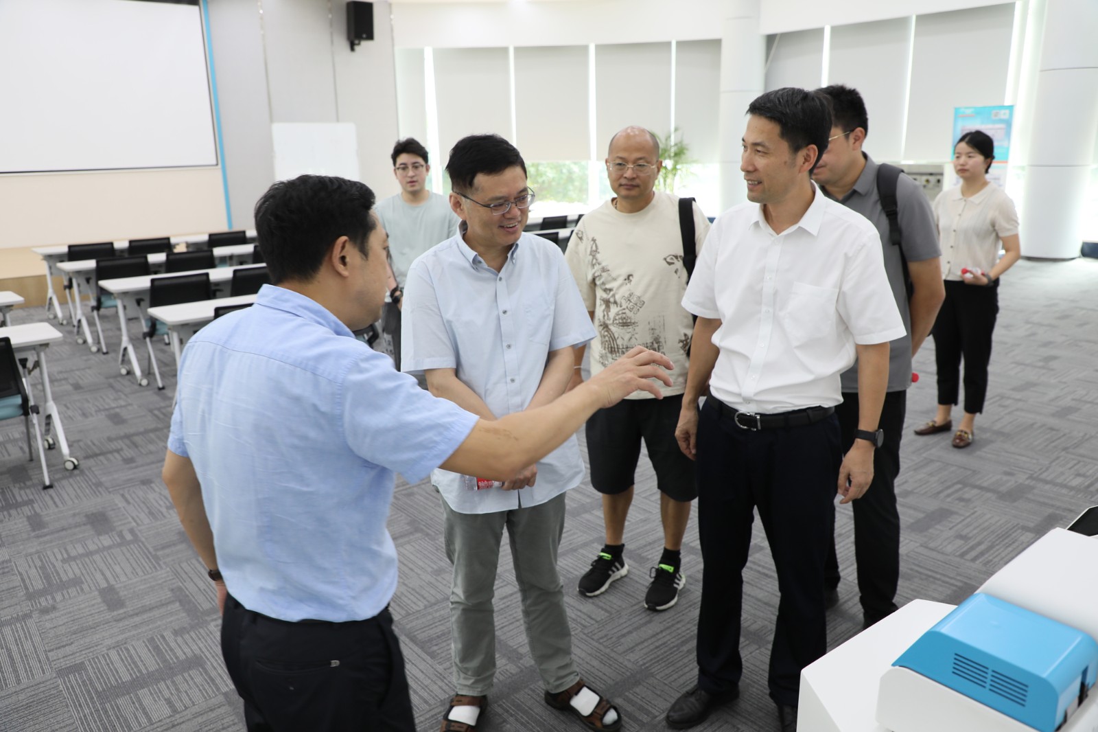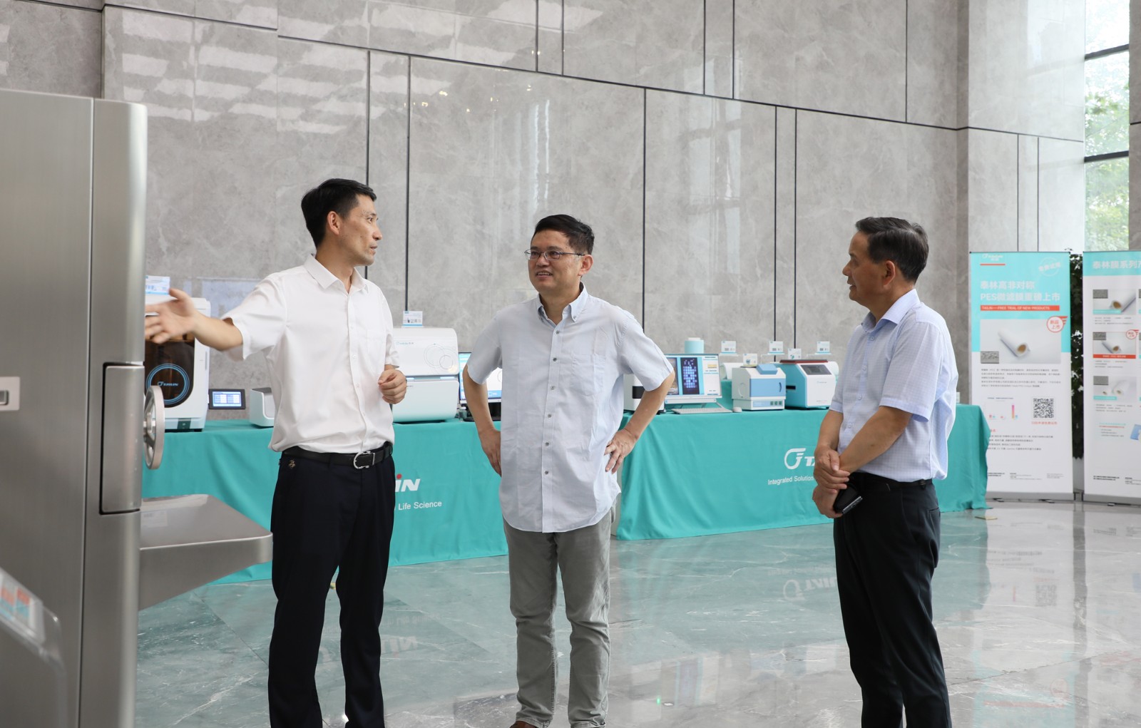 隨后,調研團一行來到泰林生命科學園區,相繼參觀了展廳產品區、膜技術生產車間、培養器車間、凍干車間和實驗室。沈總向專家們介紹了公司的技術成果、業務布局、發展規劃、創新應用案例等情況,調研團深入感受了“硬科技”加持的制造新力量。