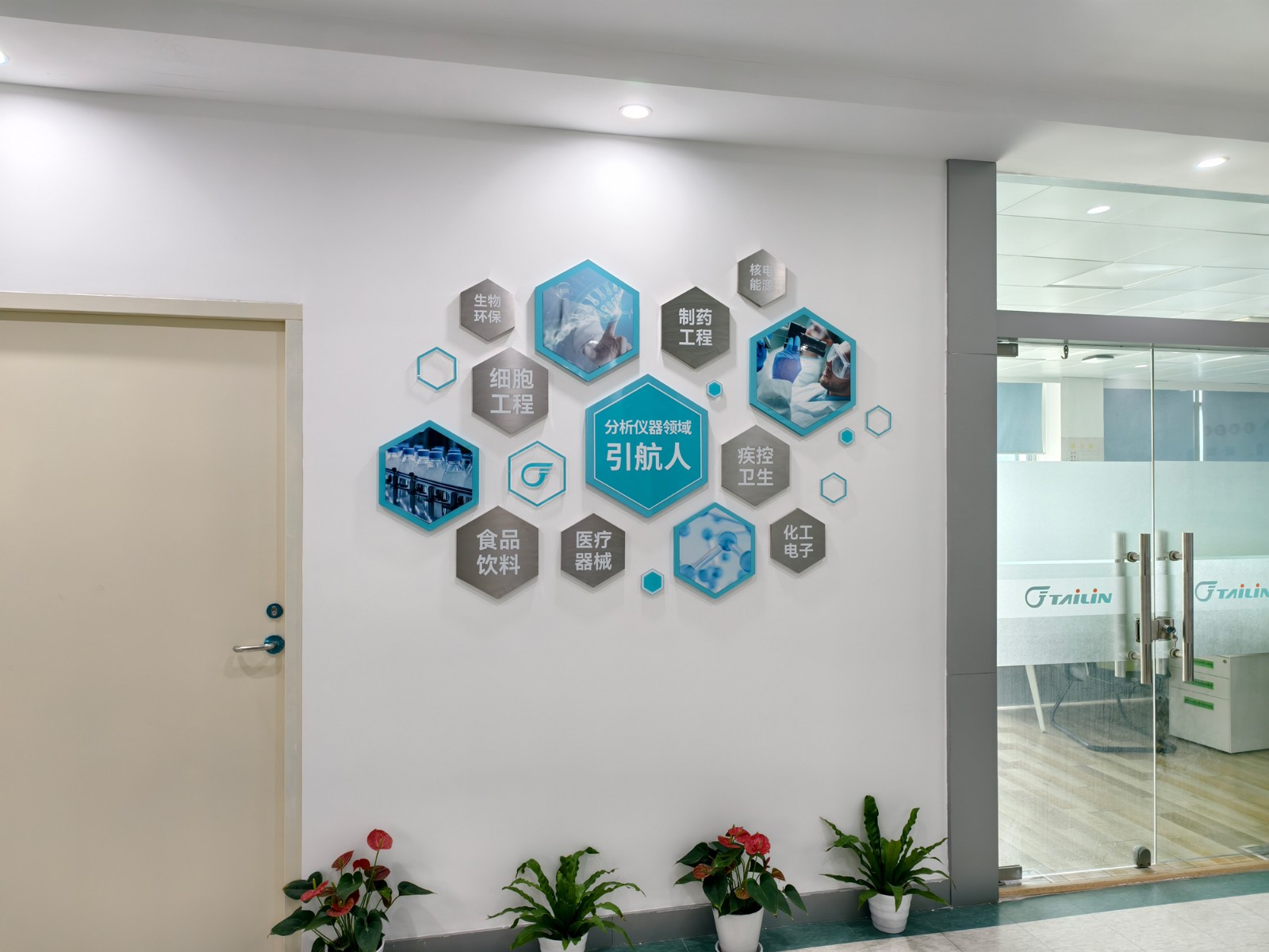 除此之外,分析儀器子公司內部的裝潢也煥然一新。一樓大廳形象墻全面升級,企業標識醒目突出,空間視覺更顯敞亮開闊,彰顯企業大氣風范;移步二樓,參觀路線經過精心優化,新增榮譽墻與員工風采展示板塊,將員工成就與企業輝煌交相輝映,彰顯團隊凝聚力;沿途的形象燈箱設計更為簡約明亮,照亮訪客探索之旅。