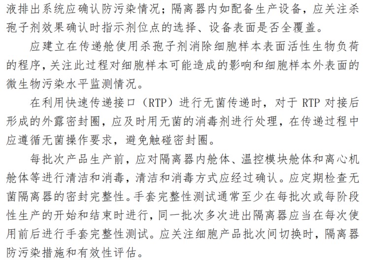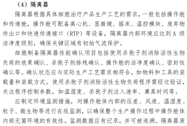 隔離器是細胞治療產品生產的常見設備,是無菌生產的必要條件,《指南》中對隔離器的要求主要包括以下幾個方面: