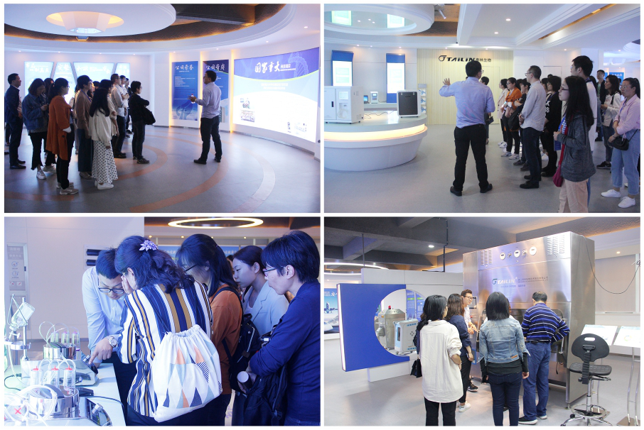 參觀一期新生產基地后,領導和專家們隨即參觀了泰林生物企業(yè)形象和產品展示廳,全面地了解了泰林生物的發(fā)展歷史、企業(yè)文化和核心產品,對無菌隔離器系統、過氧化氫滅菌器、無菌檢測系統、微生物檢測系統及TOC分析儀等產品產生了極大的興趣。參觀的同時也對產品的操作及性能特點展開了交流、討論,充分肯定了泰林生物的科研成果和技術水平。