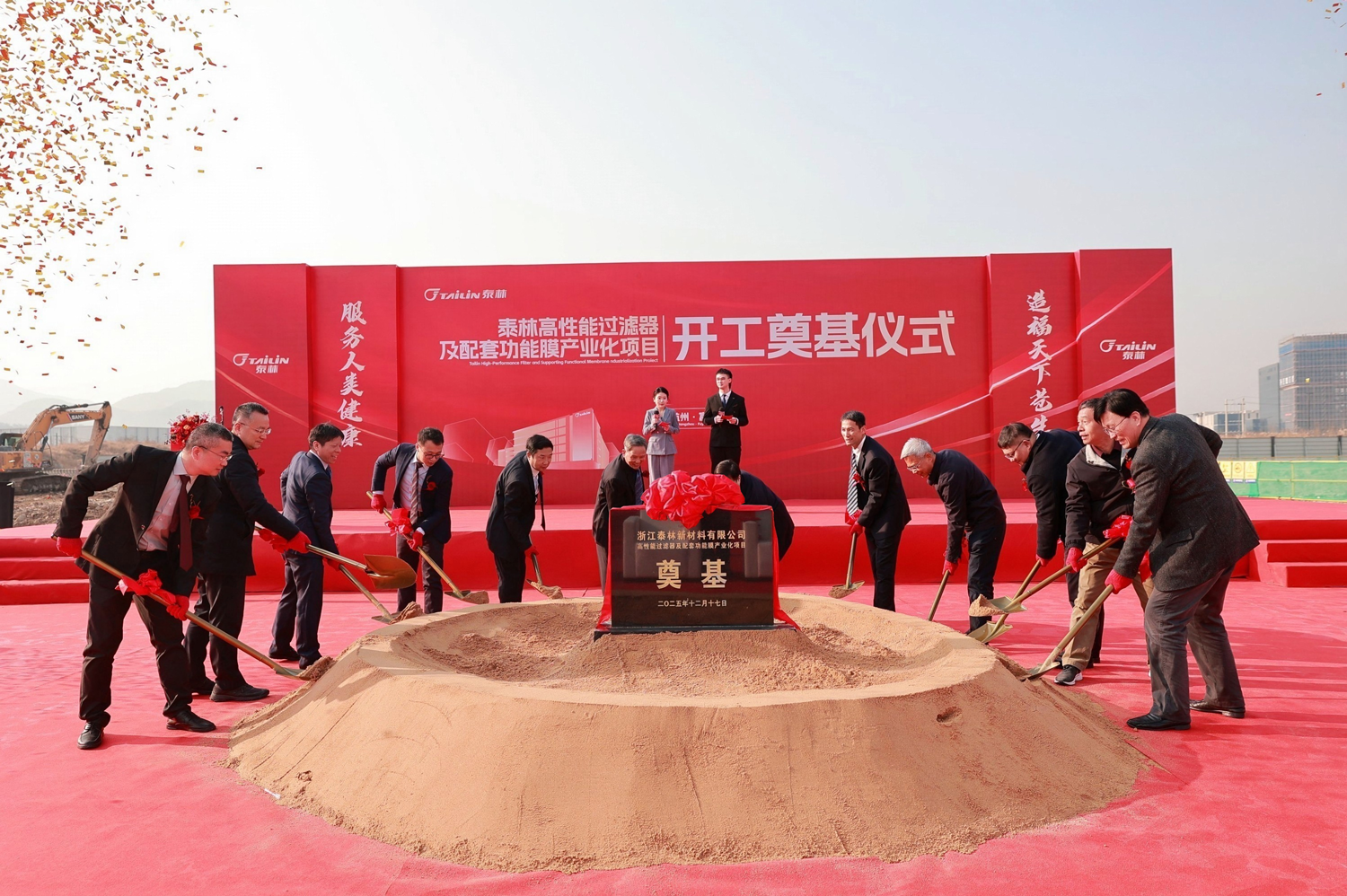 2025年12月17日上午,浙江泰林新材料有限公司高性能過濾器及配套功能膜產(chǎn)業(yè)化項目開工奠基儀式隆重舉行。中共杭州市富陽區(qū)委常委、杭州富春灣新城管委會主任孫偉,杭州市富陽區(qū)靈橋鎮(zhèn)黨委書記章繪,浙江省新材料產(chǎn)業(yè)協(xié)會理事長、浙江大學教授、浙江省特級專家楊輝,泰林生物董事長、總裁葉大林,泰林生物副總裁、泰林新材料總經(jīng)理沈志林,泰林生物副總裁、泰林醫(yī)學工程總經(jīng)理夏信群,泰林生物獨立董事董明、倪崖、厲國威,項目設(shè)計單位、總包單位、監(jiān)理單位代表,泰林生物及旗下子公司管理團隊均蒞臨現(xiàn)場,共同見證了這一重要時刻!