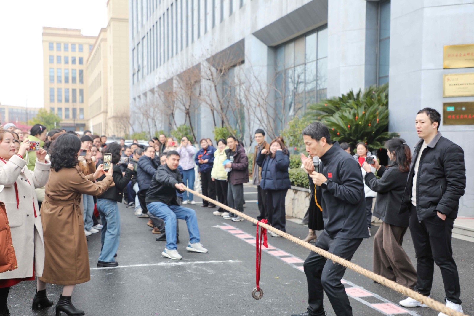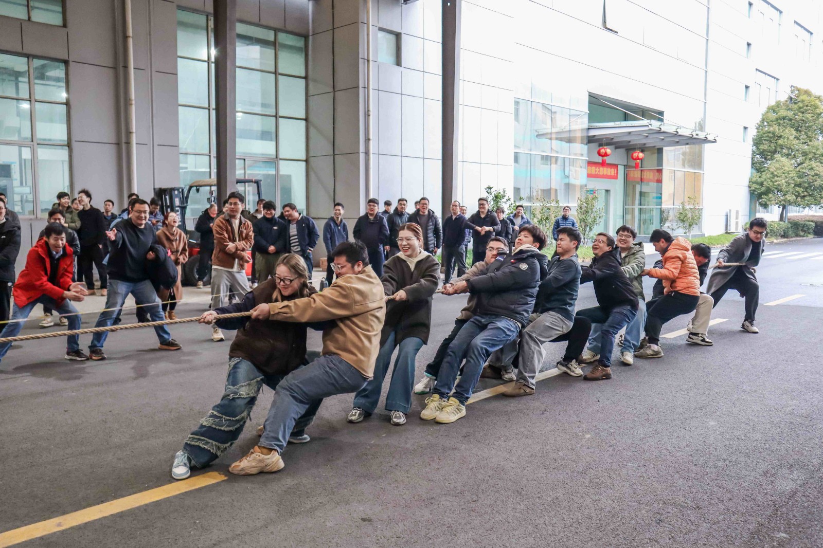 哨響,勁發!作為延續多年的開工傳統,拔河比賽瞬間點燃全場熱情。賽場之上,泰林人穩扎馬步、全力傾身,緊握麻繩凝聚全身力量;賽場之外,加油吶喊聲此起彼伏,響徹園區。麻繩之上紅綢的每一次擺動,都緊緊牽動著所有人的心。